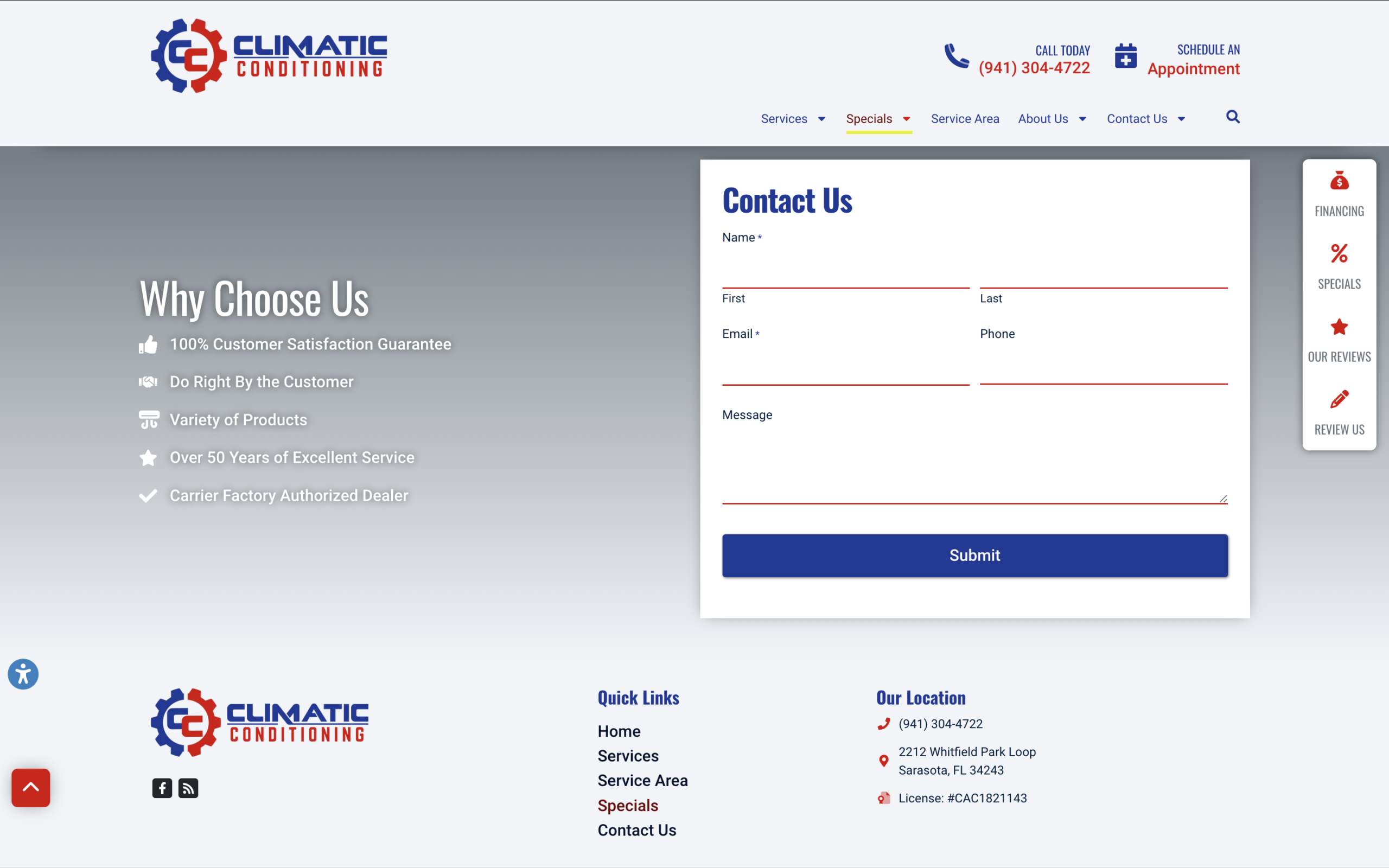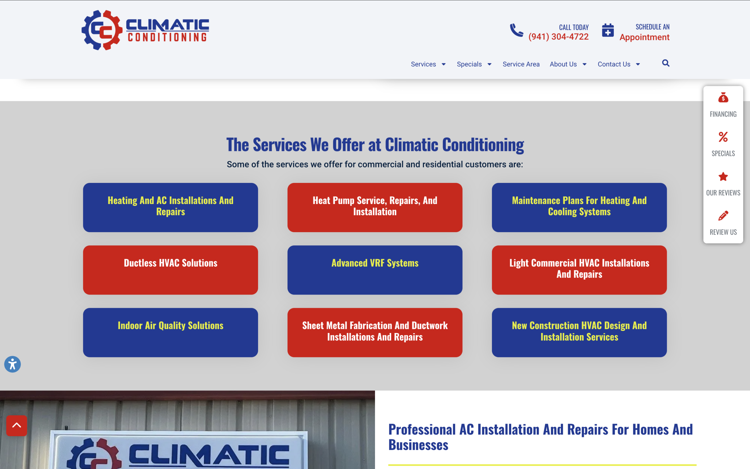 As the web designer, I built the client’s first website, incorporating their branding colors of blue, red, and yellow to create a cohesive and visually engaging design. I introduced a floating sidebar to streamline navigation and reduce clutter in the main menu and top bar. My responsibilities included designing and building the layout, optimizing page speed, conducting responsive testing, and delivering a polished, functional website tailored to the client’s needs.